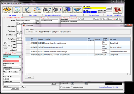 Each time you create a job sheet for a site; Job Tracker Professional will automatically make a note of it and pop it into the history for that site.
